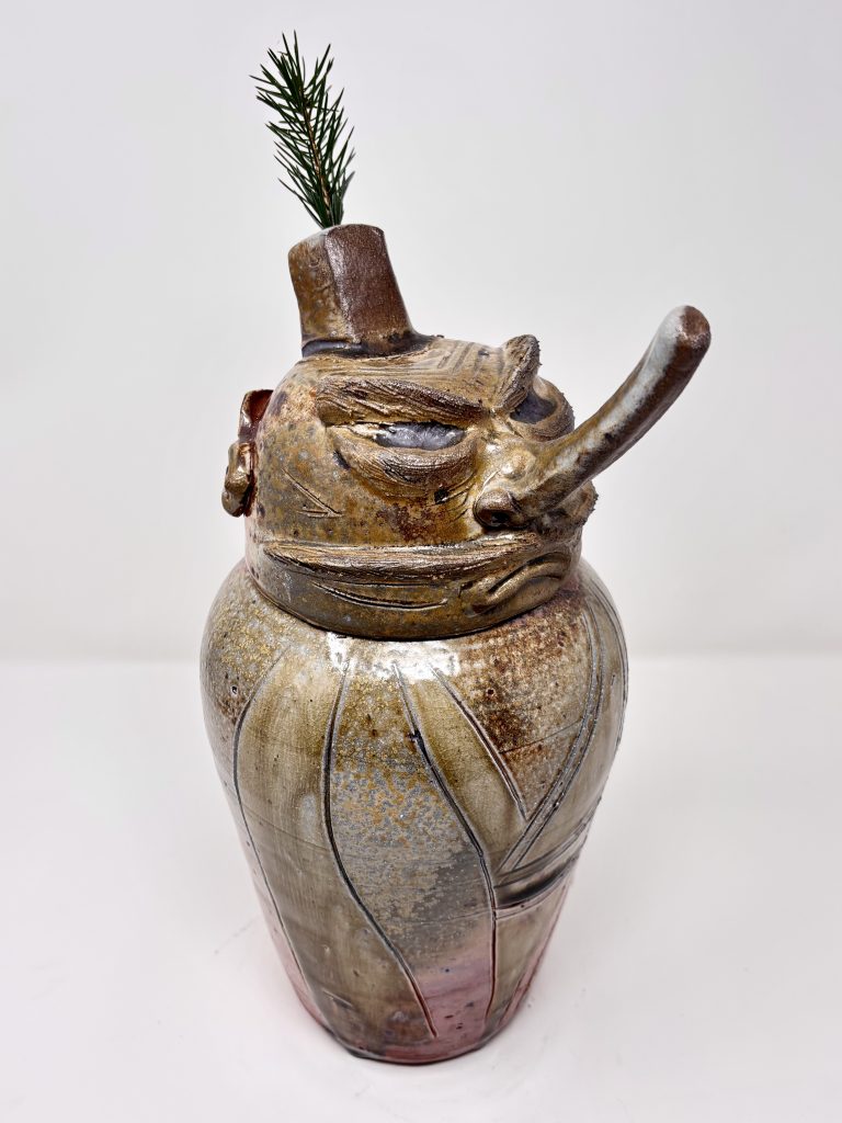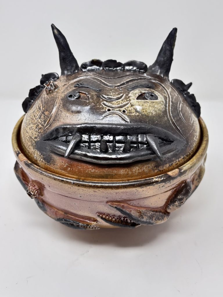 The work in Hafu Potter – Random Yokai is born from a meeting place of clay, fire, and story. Yokai are the supernatural beings, tricksters, and spirits of Japanese folklore—creatures that blur the line between the ordinary and the extraordinary. At once mischievous, grotesque, and wise, they embody the playful, unsettling, and often contradictory world of the imagination. These jars, jugs, and vases channel that spirit, giving form to figures that remind us the world is never as straightforward as we might wish.
